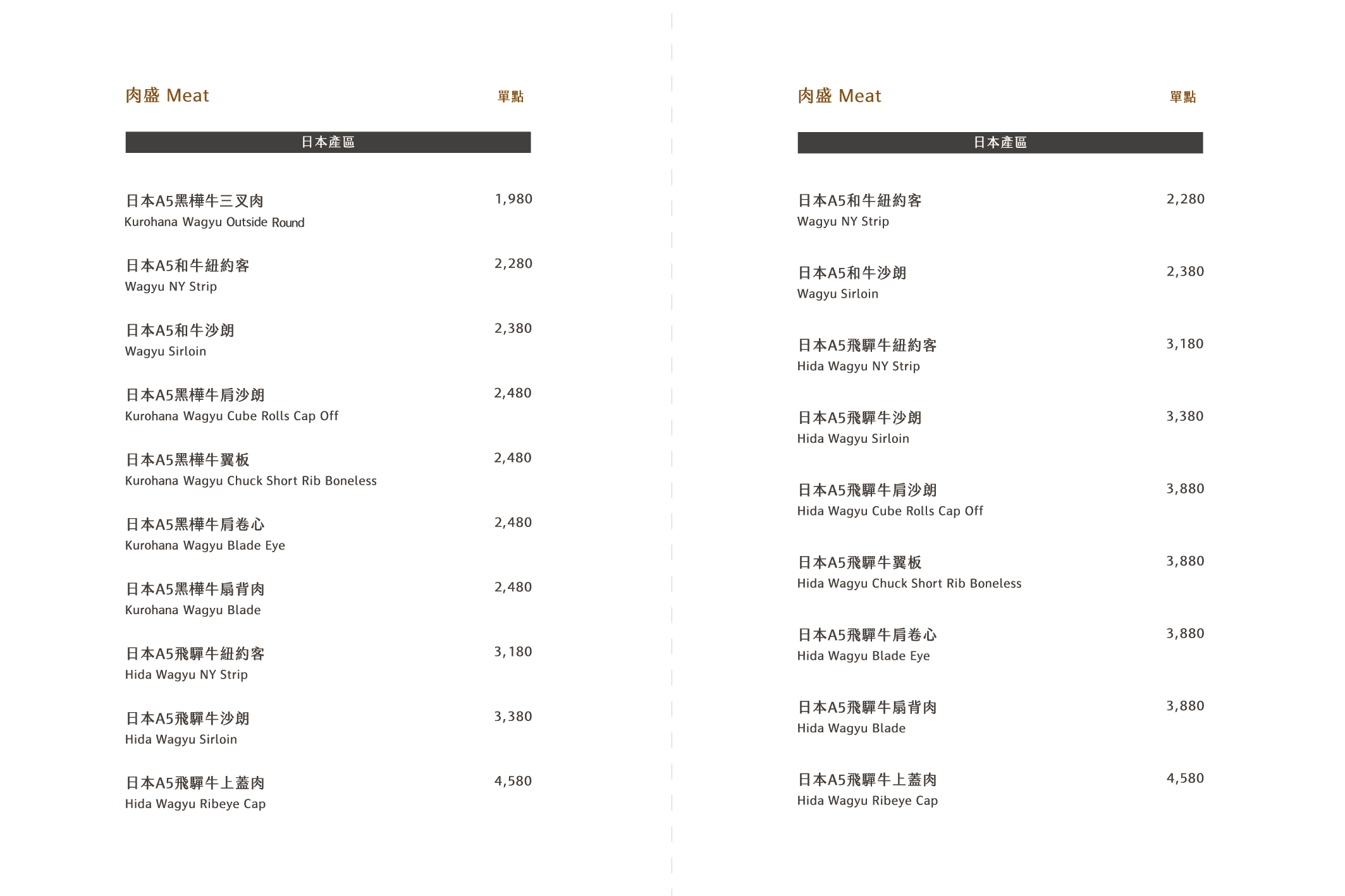 餐酒菜單