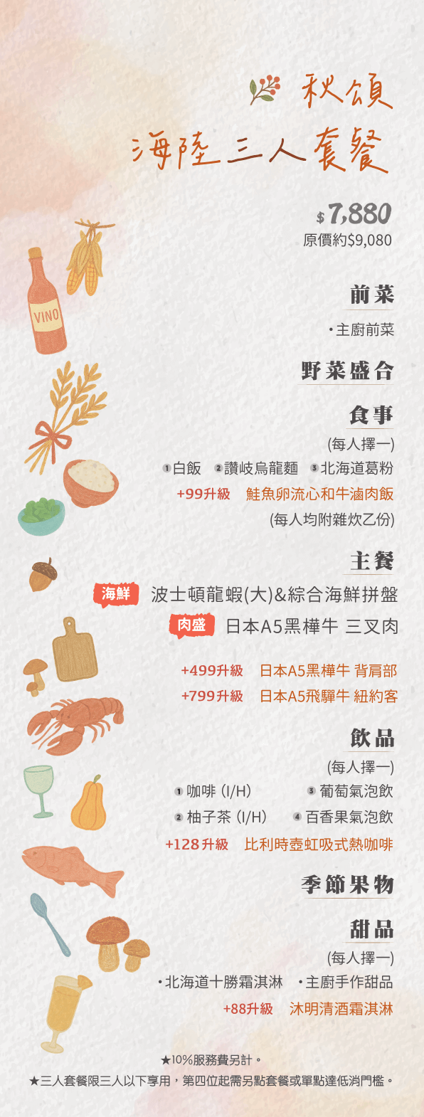 秋頌海陸三人套餐