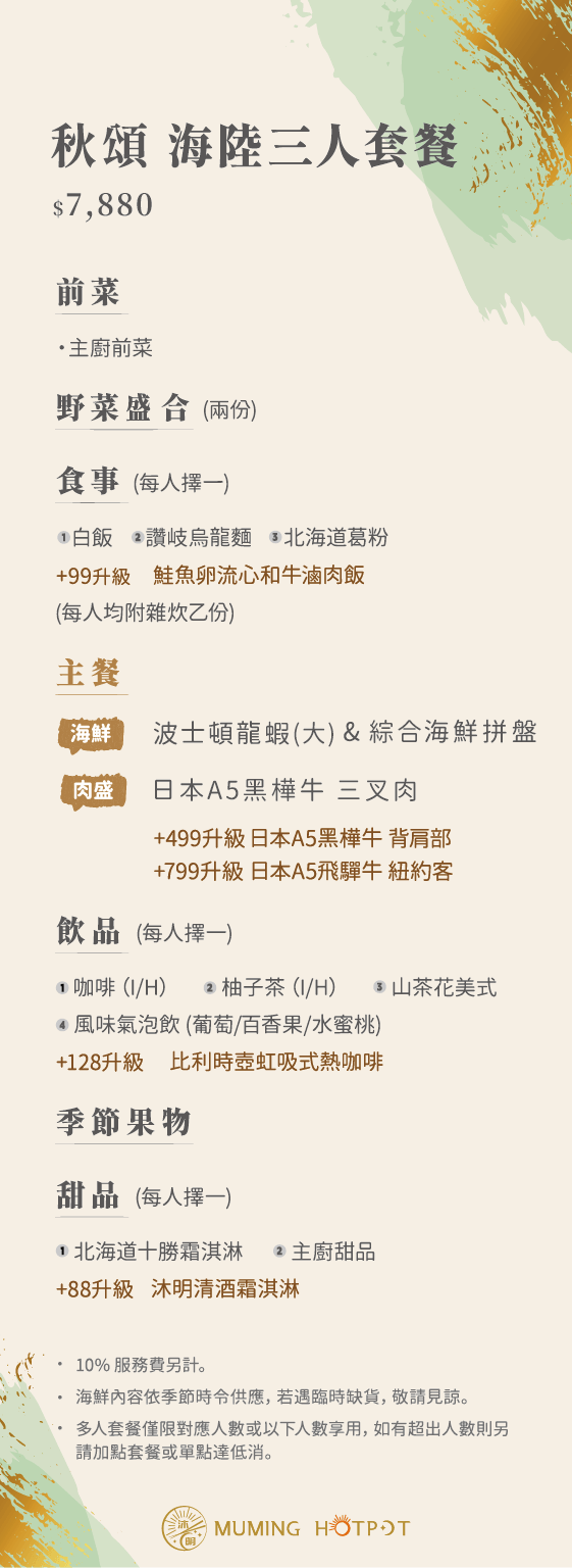 秋頌海陸三人套餐